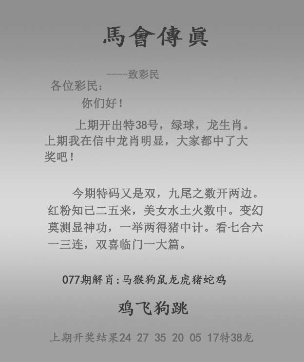 | 主题 :077期:正马会传真 |