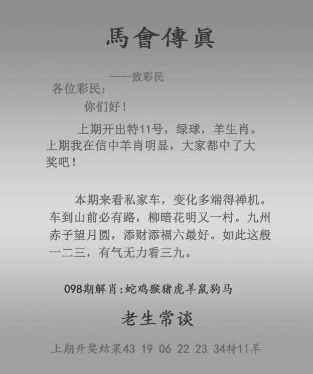 | 主题 :098期:正马会传真 |