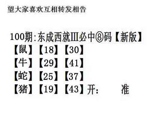 | 主题 :100期:另版【东成西就四肖8码】 |