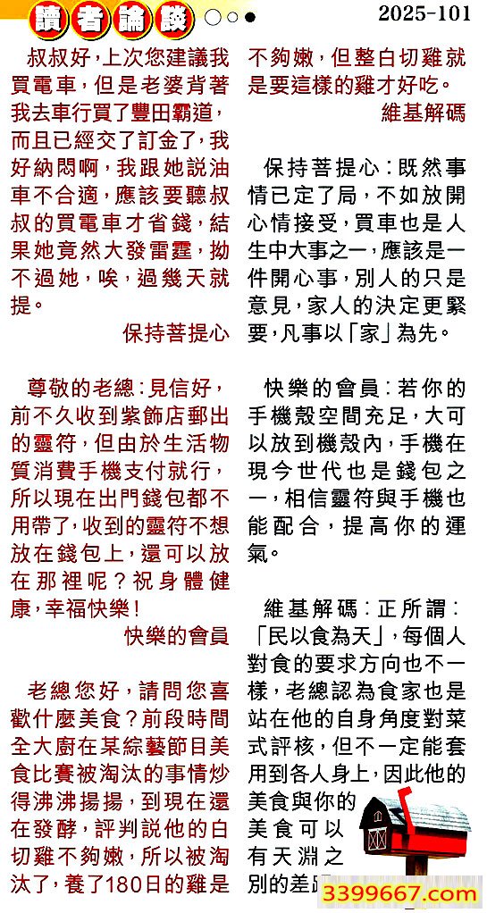 | 主题 :101期:彩民推荐〖貼信讀者論壇〗 |