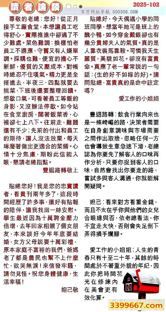 | 主题 :102期:彩民推荐〖貼信讀者論壇〗 |