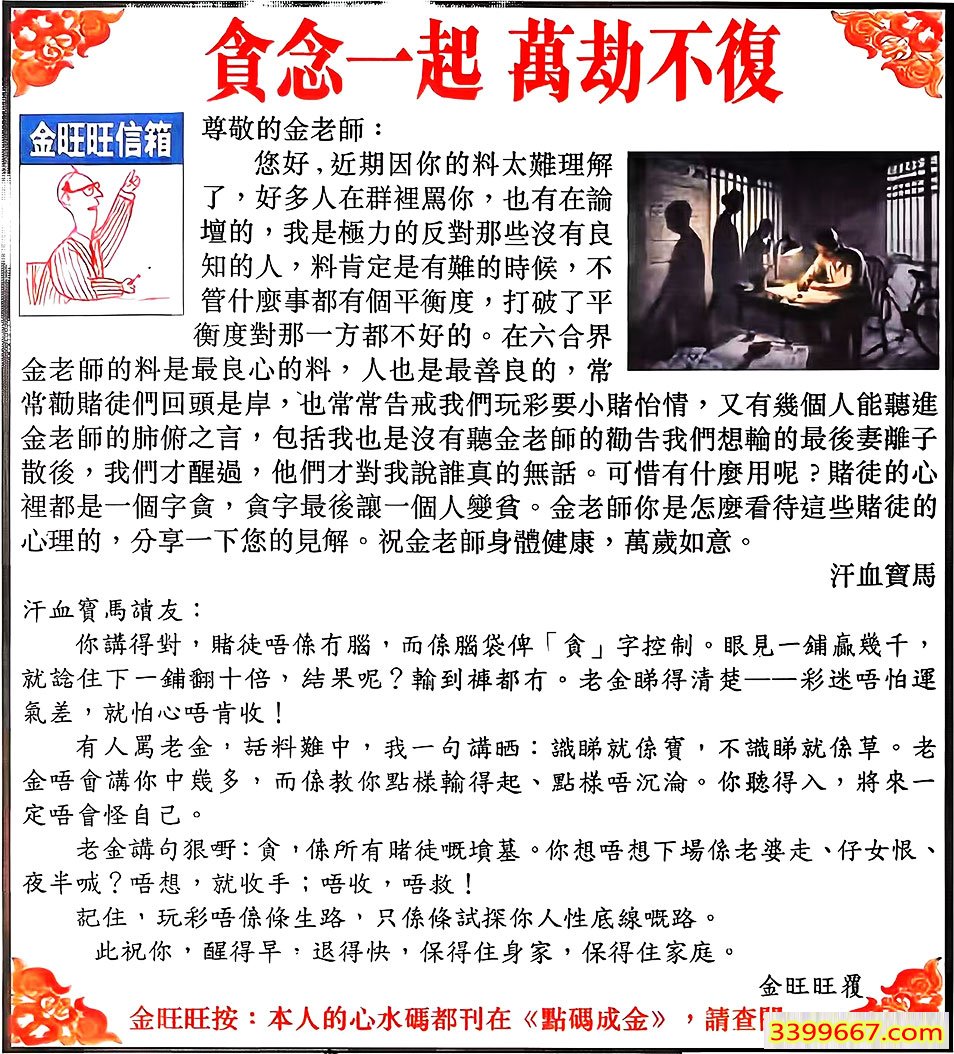 | 主题 :102期:金旺旺信箱彩民推荐→→《貪念一起 萬劫不復》 |