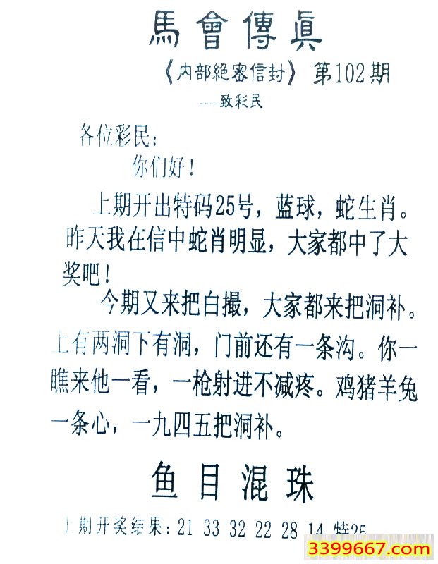 | 主题 :102期:首发推荐:≮馬會傳眞≯→(香港正版) |