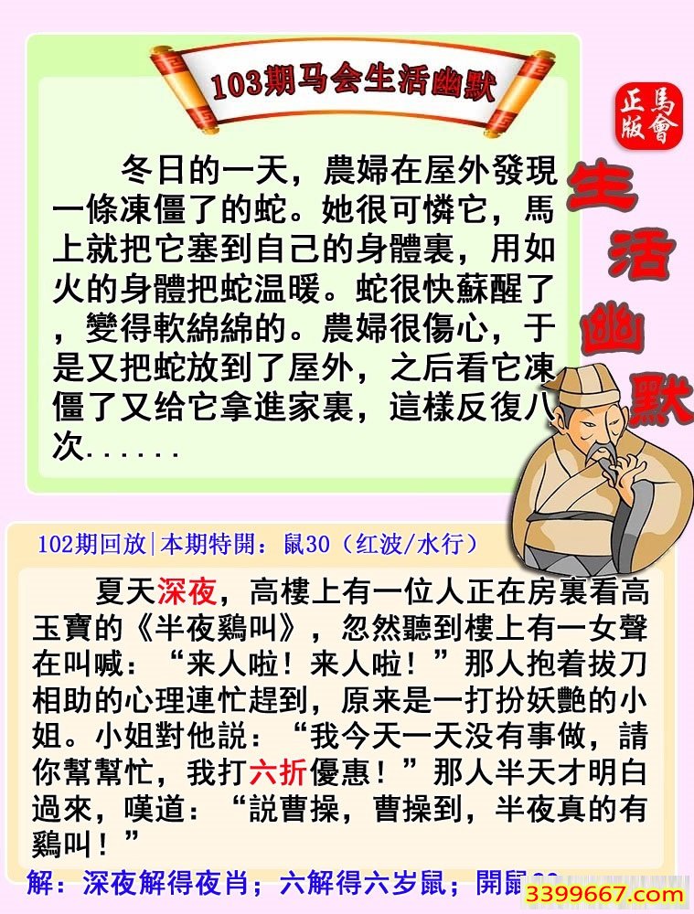 | 主题 :103期:马会生化幽默 |