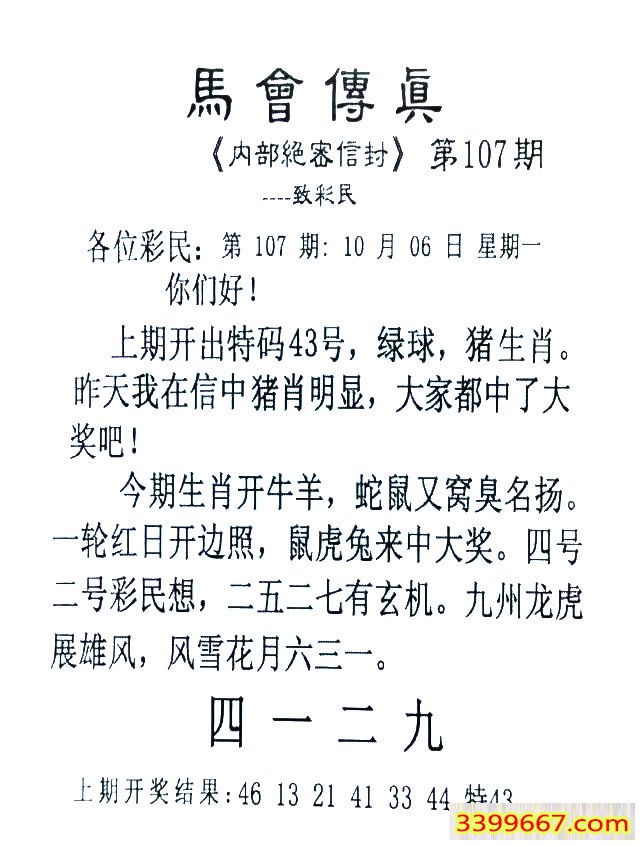 | 主题 :107期:首发推荐:≮馬會傳眞≯→(香港正版) |