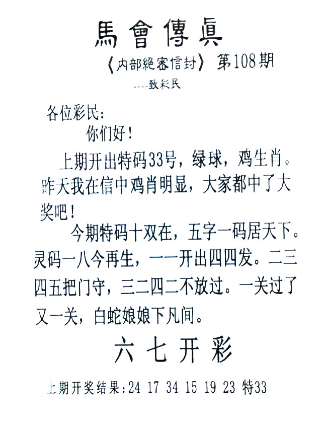 | 主题 :108期:首发推荐:≮馬會傳眞≯→(香港正版) |
