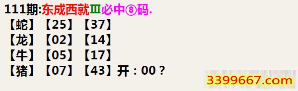 | 主题 :111期:东成西就Ⅲ必中⑧码 |