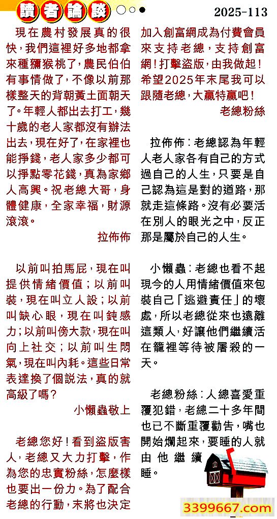 | 主题 :113期:彩民推荐〖貼信讀者論壇〗 |