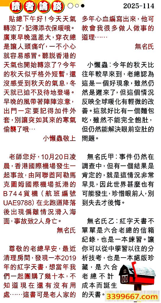 | 主题 :114期:彩民推荐〖貼信讀者論壇〗 |