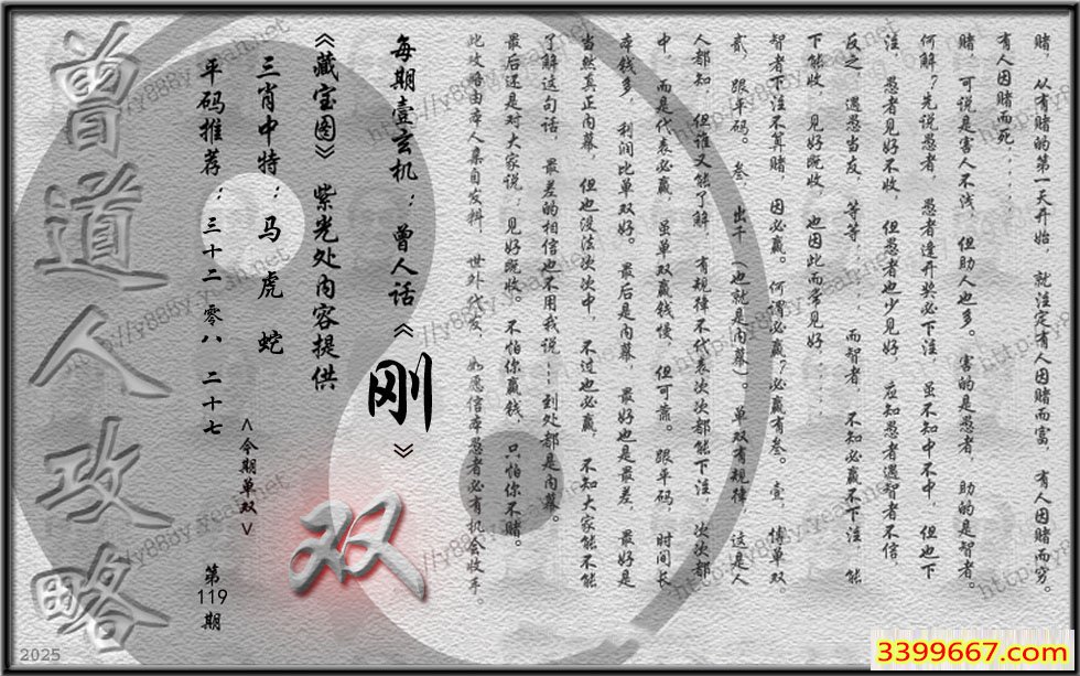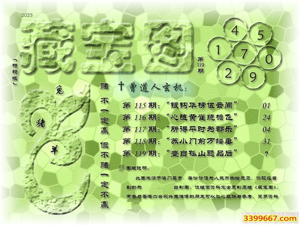 | 主题 :119期藏寶圖 新:壹自鼓山题品后 老:解箨时闻声簌簌 禁:龙 禁:6尾 |