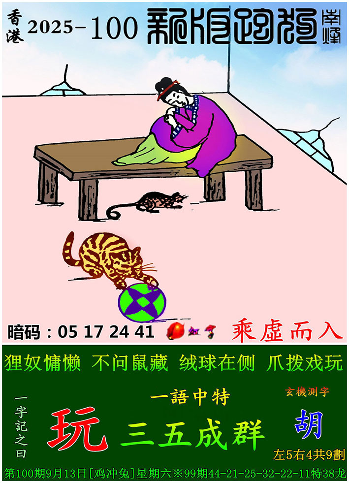 100期:新版跑狗一字記之曰【玩】 玄機測字:【胡】